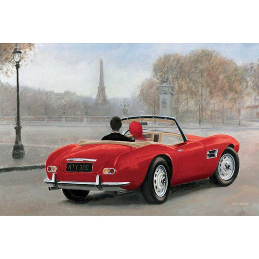 A Ride in Paris III Red Car Black Modern Wood Framed Art Print with Double Matting by Fabiano, Marco