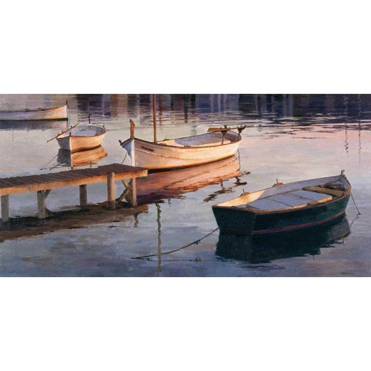 Barcas al Atardecer Black Modern Wood Framed Art Print with Double Matting by Romeu, Poch