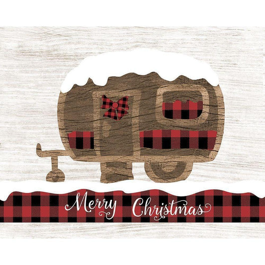 Christmas Camper Black Modern Wood Framed Art Print with Double Matting by CAD Designs