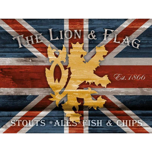 Lion And Flag Black Modern Wood Framed Art Print with Double Matting by Stimson, Diane