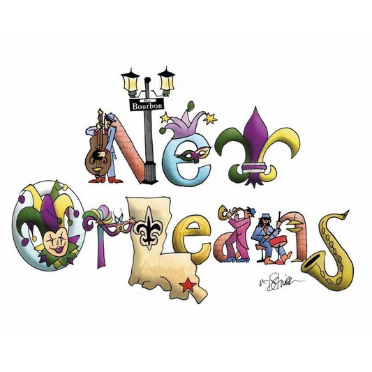 New Orleans Black Modern Wood Framed Art Print with Double Matting by Stimson, Diane