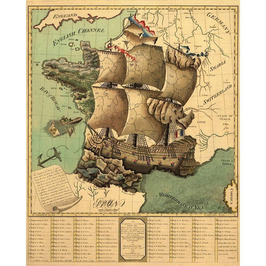 French Map Black Modern Wood Framed Art Print with Double Matting by Vintage Apple Collection