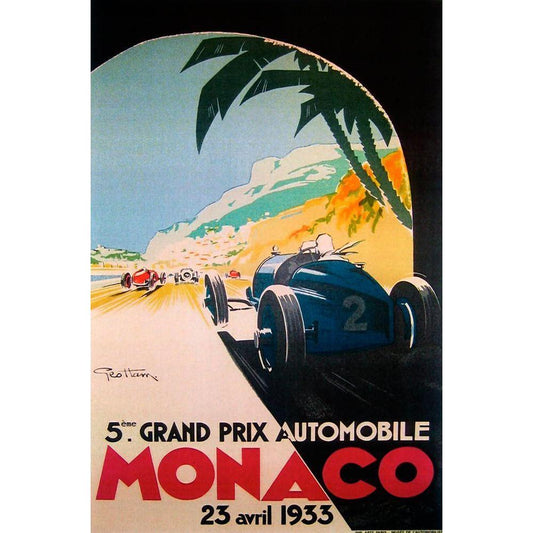 Grandprix Automobile Monaco 1933 Black Modern Wood Framed Art Print with Double Matting by Vintage Apple Collection