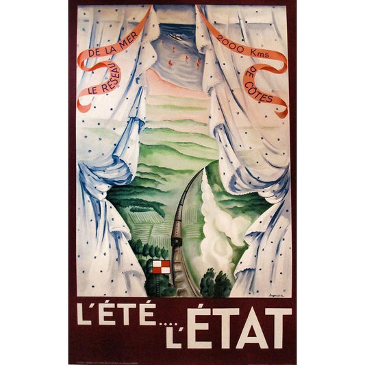 Auvergne Railroads Black Modern Wood Framed Art Print with Double Matting by Vintage Apple Collection