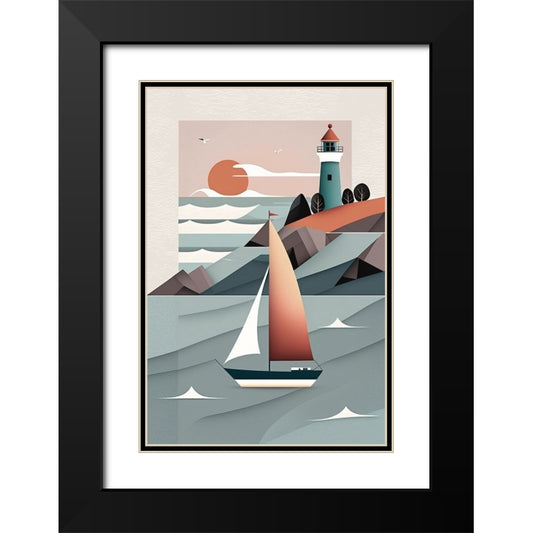 Mid Century Coastal Scenes 37 Black Modern Wood Framed Art Print with Double Matting by Heere, Ray