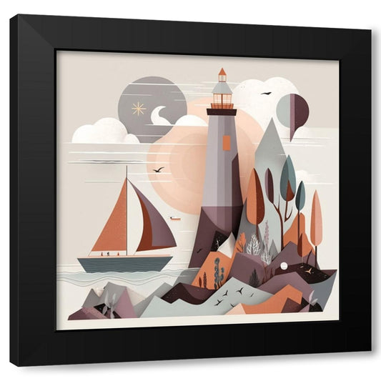 Mid Century Coastal Scenes 41 Black Modern Wood Framed Art Print with Double Matting by Heere, Ray
