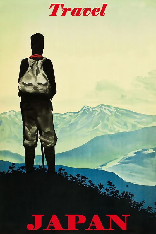 Japan Travel Poster White Modern Wood Framed Art Print with Double Matting by Vintage Travel Posters