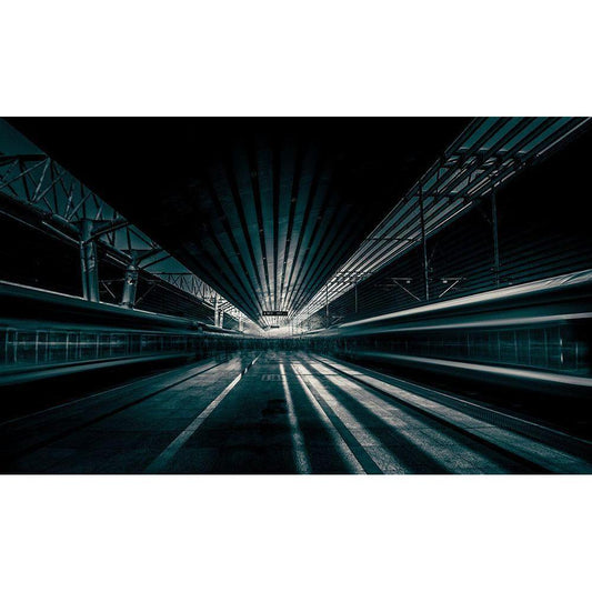 Platform Beijing Black Modern Wood Framed Art Print with Double Matting by Baidongyun