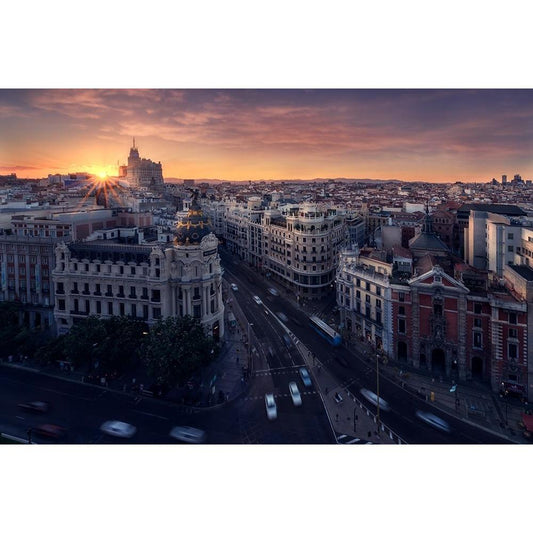 Madrid City Black Modern Wood Framed Art Print with Double Matting by Ferrero, Ivan