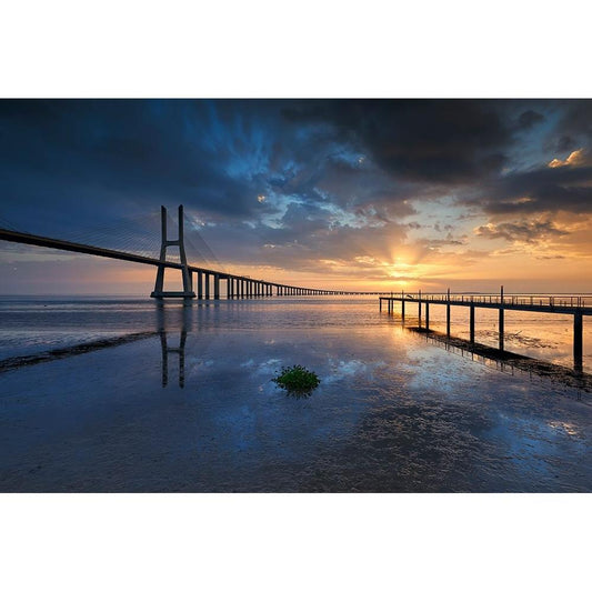 Lofoten Sunrise Black Modern Wood Framed Art Print with Double Matting by Tanase, Sorin