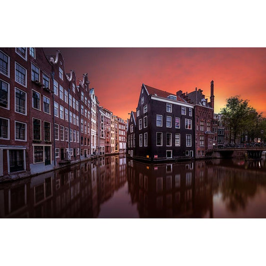 Amsterdam Dawn Black Modern Wood Framed Art Print with Double Matting by Merakiphotographer