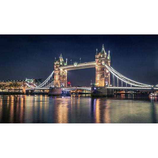 Night At The Tower Bridge Black Modern Wood Framed Art Print with Double Matting by El Assy, Nader