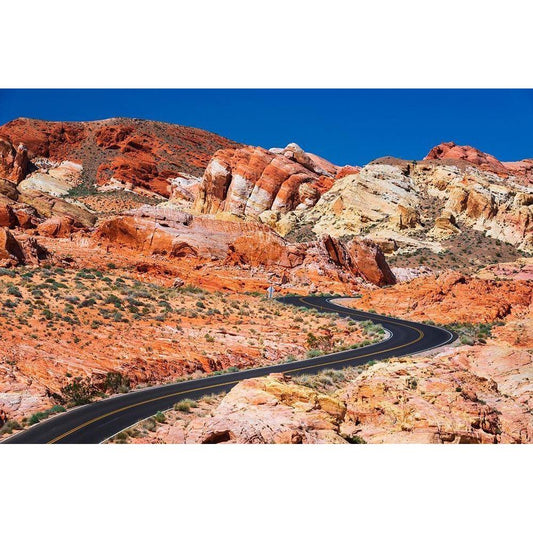 The park road winding through colorful sandstone-Valley of Fire State Park-Nevada-USA Black Modern Wood Framed Art Print with Double Matting by Bishop, Russ
