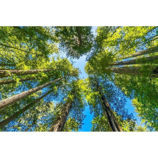 Green towering tree-Redwoods National Park-Newton B Drury Drive-Crescent City-California Black Modern Wood Framed Art Print with Double Matting by Perry, William