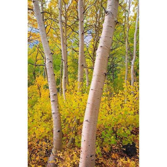 Quaking aspen in full autumn color along Bishop Creek-Inyo National Forest-California-USA Black Modern Wood Framed Art Print with Double Matting by Bishop, Russ