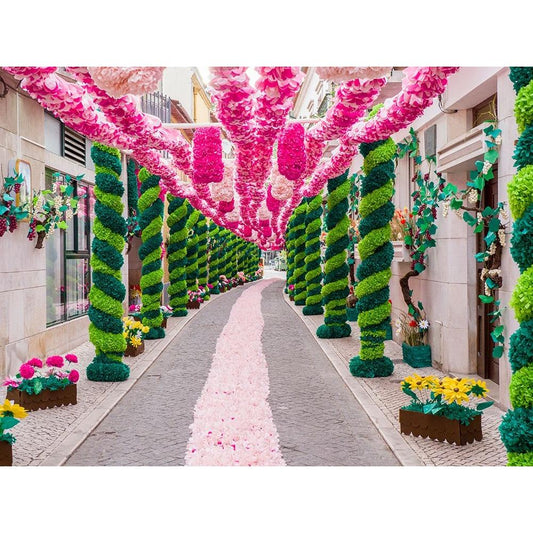 Portugal-Tomar-During the Feast of the Trays-or Festa dos Tabuleiros-the residents of each street c Black Modern Wood Framed Art Print with Double Matting by Eggers, Julie