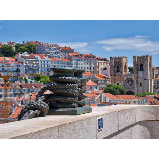 Portugal-Lisbon-View of the Lisbon Cathedral from the Arco da Rua Augusta Black Modern Wood Framed Art Print with Double Matting by Eggers, Julie