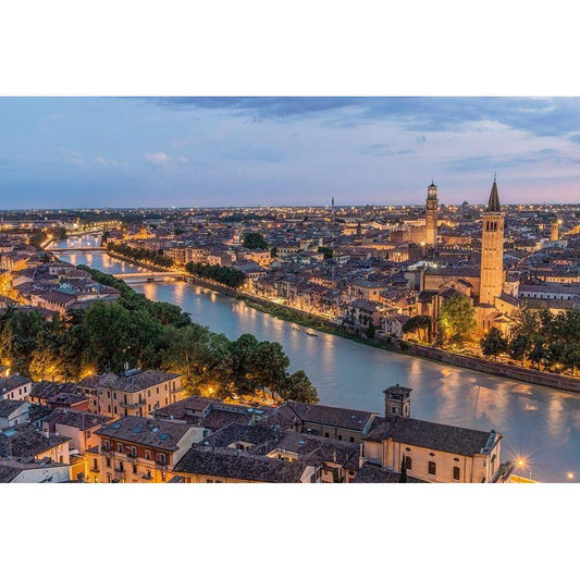 Italy-Verona Looking Down From Castello San Pietro at Twilight Black Modern Wood Framed Art Print with Double Matting by Tilley, Rob