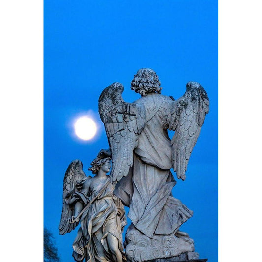 Moon Bernini Angels Castel Ponte Sant Angelo-Rome-Italy Gian Lorenzo Bernini Black Modern Wood Framed Art Print with Double Matting by Perry, William