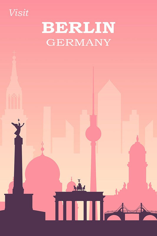 Berlin Travel Poster White Modern Wood Framed Art Print with Double Matting by Vintage Travel Posters