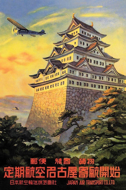 Japan Air Transport - Nagoya Castle White Modern Wood Framed Art Print with Double Matting by Senzo