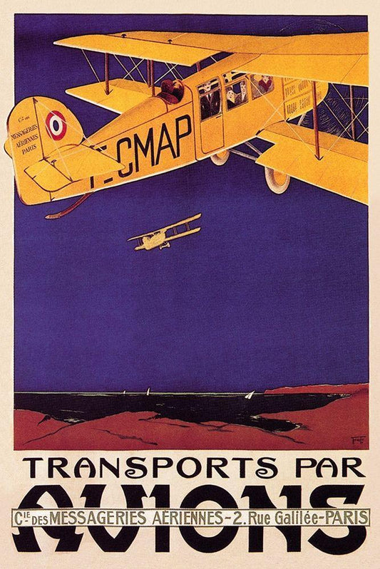 Transports par Avions White Modern Wood Framed Art Print with Double Matting by Money, N R