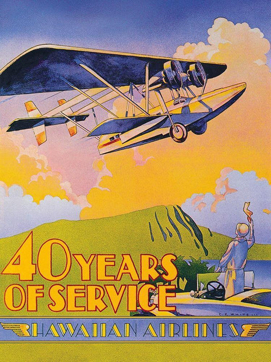 Hawaiian Airlines - 40 Years of Service White Modern Wood Framed Art Print with Double Matting by White, C.E.