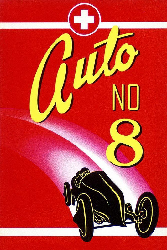Auto No. 8 White Modern Wood Framed Art Print with Double Matting by Retrotravel