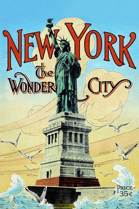 New York; The Wonder City White Modern Wood Framed Art Print with Double Matting by Retrotravel