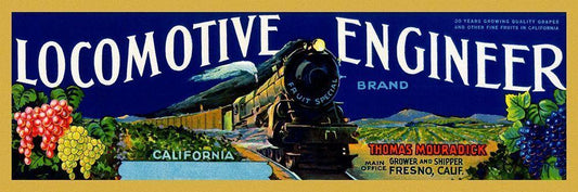 Locomotive Engineer Brand California Grapes White Modern Wood Framed Art Print with Double Matting by Retrotravel