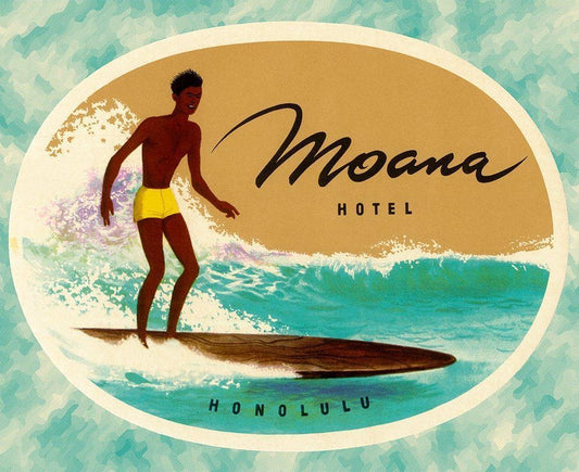 Moana Hotel Luggage Label White Modern Wood Framed Art Print with Double Matting by Retrotravel