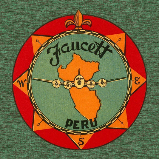 Faucett Aviation Airline Luggage Label White Modern Wood Framed Art Print with Double Matting by Retrotravel
