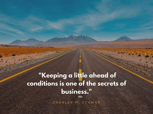 Charles M. Schwab Quote: Ahead of Conditions White Modern Wood Framed Art Print with Double Matting by ArtsyQuotes