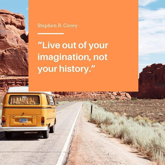 Stephen R. Covey Quote: Imagination White Modern Wood Framed Art Print with Double Matting by ArtsyQuotes