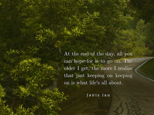 Janis Ian Quote: Keeping On Keeping On White Modern Wood Framed Art Print with Double Matting by ArtsyQuotes