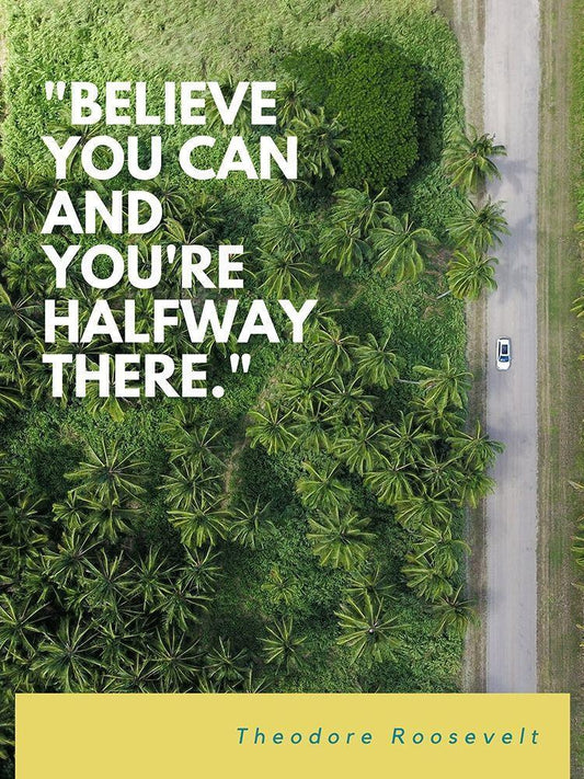 Theodore Roosevelt Quote: Believe You Can White Modern Wood Framed Art Print with Double Matting by ArtsyQuotes