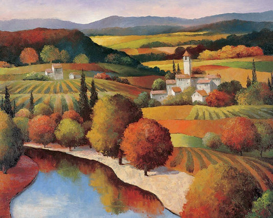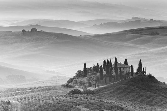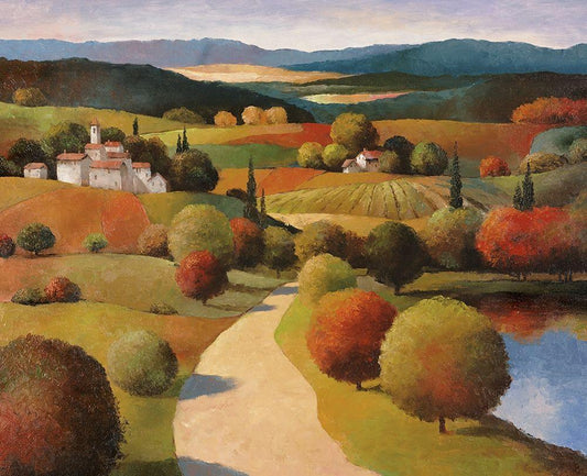 Toscany Vista II White Modern Wood Framed Art Print with Double Matting by Unknown