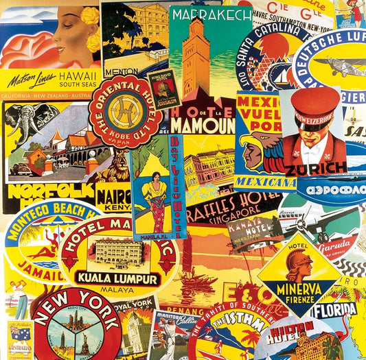 Travel Stickers Collage White Modern Wood Framed Art Print with Double Matting by Unknown