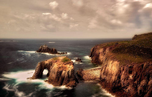 Enysdodman Arch. or Lands End Arch. Cornwall, England White Modern Wood Framed Art Print with Double Matting by Frates, Dennis