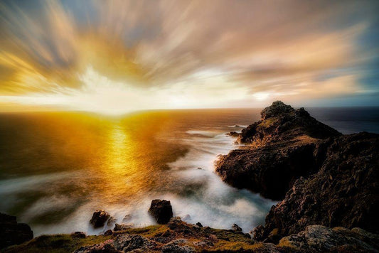 Sunset over Gurnards Headq. Cornwall, England White Modern Wood Framed Art Print with Double Matting by Frates, Dennis