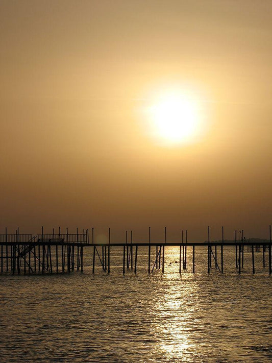 Golden Sunset White Modern Wood Framed Art Print with Double Matting by Anonymous