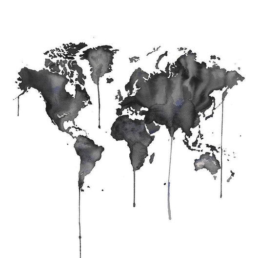 WATERCOLOR WORLD MAP White Modern Wood Framed Art Print with Double Matting by Atelier B Art Studio