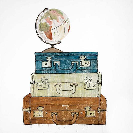 GO AROUND THE WORLD White Modern Wood Framed Art Print with Double Matting by Atelier B Art Studio