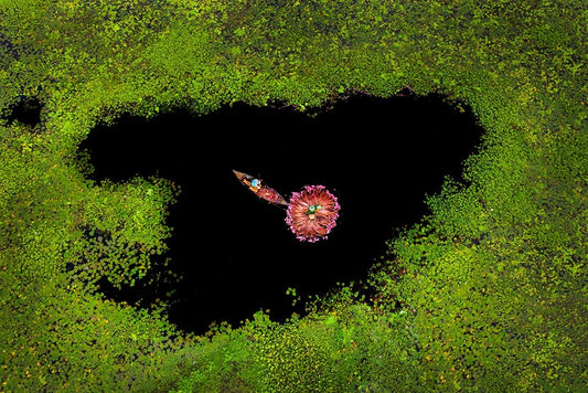 Harvesting Waterlily White Modern Wood Framed Art Print with Double Matting by Adikary, Sujon