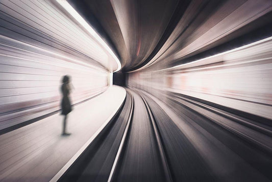 The Girl Of The Metro Station White Modern Wood Framed Art Print with Double Matting by Aristoteles, David