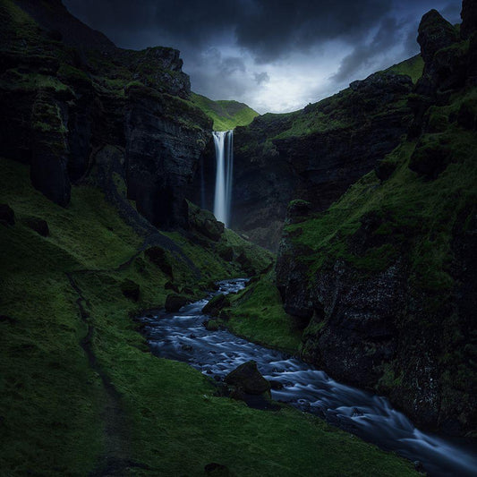 Kvernufoss White Modern Wood Framed Art Print with Double Matting by Pablo De, Juan