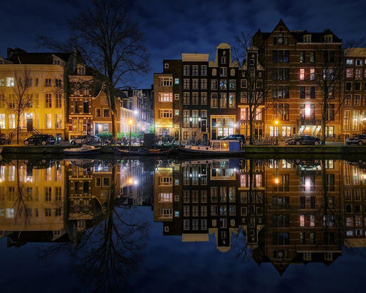 Amsterdam At Night 2017 White Modern Wood Framed Art Print with Double Matting by Pablo De, Juan