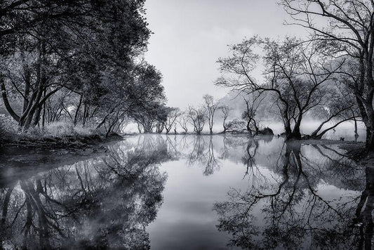 Sinking In Fog White Modern Wood Framed Art Print with Double Matting by Jamal, Khalid