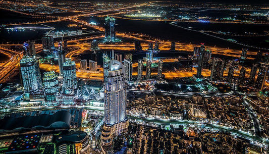 Dubai Night White Modern Wood Framed Art Print with Double Matting by Schmidtke, Holger