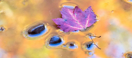 US-Michigan-Upper Peninsula Leaf and rocks in pond with autumn colors reflection White Modern Wood Framed Art Print with Double Matting by Eggers, Julie